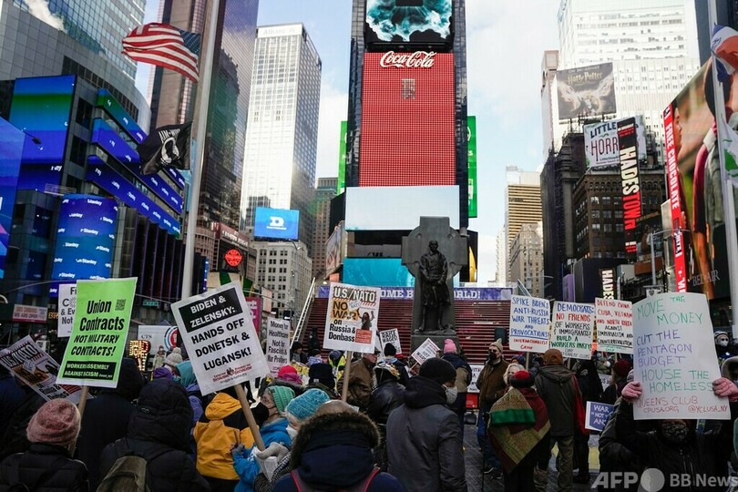ニュース 社会 ウクライナ派兵反対、米NYでデモ 2022年2月6日 16:18 発信地:ニューヨーク/米国 [ 米国 北米 ] このニュースをシェア ‹ › ❮ 8/11 ❯ 米ニューヨークのタイムズスクエアで、ウクライナ危機をめぐる米軍の派兵に反対するデモ参加者(2022年2月5日撮影)。(c)Chery DIEU-NALIO / AFP 画像作成中 ! 【2月6日 AFP】米ニューヨークのタイムズスクエア(Times Square)で5日、ロシアのウクライナ侵攻危機をめぐる米軍の派兵に反対するデモが行われた。(c)AFP 社会 一覧へ> メディア・報道関係・法人の方向け 写真・動画 購入のお問合せ>