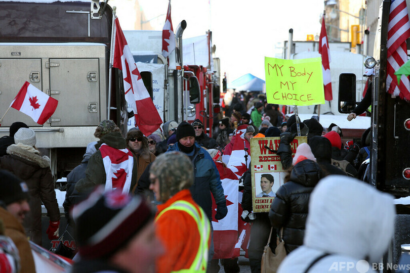 デモは、米国とカナダの国境を行き来するトラック運転手にワクチン接種が義務付けられたことに端を発している。現在は新型コロナ規制全般やジャスティン・トルドー(Justin Trudeau)政権に対する抗議活動へと拡大している。