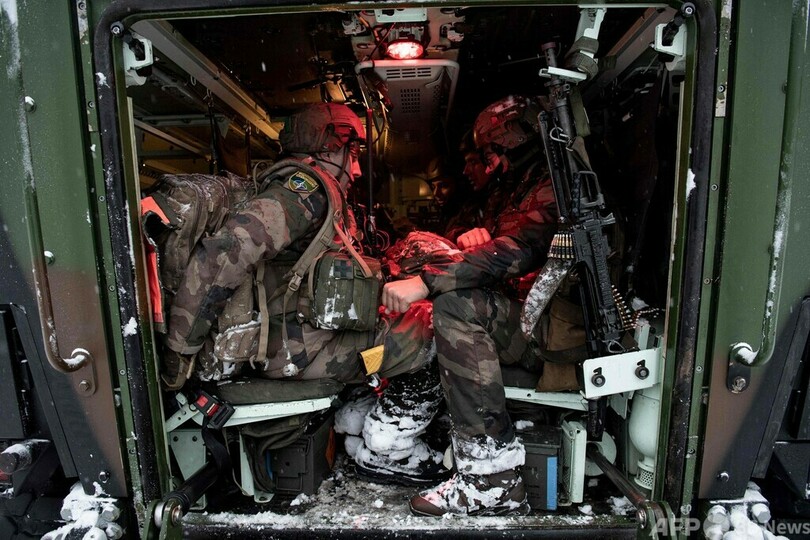 仏軍約300人の部隊を統括する幹部は「われわれはエストニア国民にとっての生命保険」であり、「ロシアを挑発するためにここにいるのではない。われわれの部隊の派遣には予防的、抑止的な狙いがあり、好戦的姿勢を示すものではない」と語り、今回の演習についてもロシアに事前通告していると説明。「だが前線に立つ準備はできており、援軍が来るまで持ちこたえることは可能だ」と述べた。(c)AFP/Daphné BENOIT