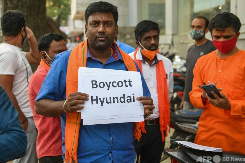 韓国・現代自にインド猛反発 ショールーム前で抗議デモ