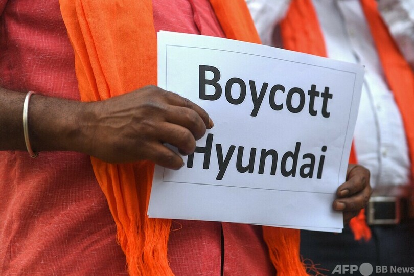 韓国・現代自にインド猛反発 ショールーム前で抗議デモ