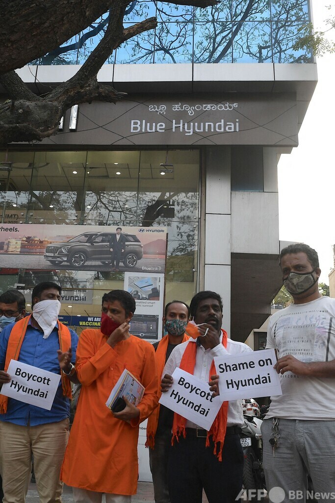 【2月9日 AFP】インド南部ベンガルール(旧バンガロール、Bangalore)で8日、ヒンズー至上主義団体ヒンズー・ジャナジャグルティ・サミティ(Hindu Janajagruti Samiti)が、韓国・現代自動車(Hyundai Motors)に対する抗議デモを行った。