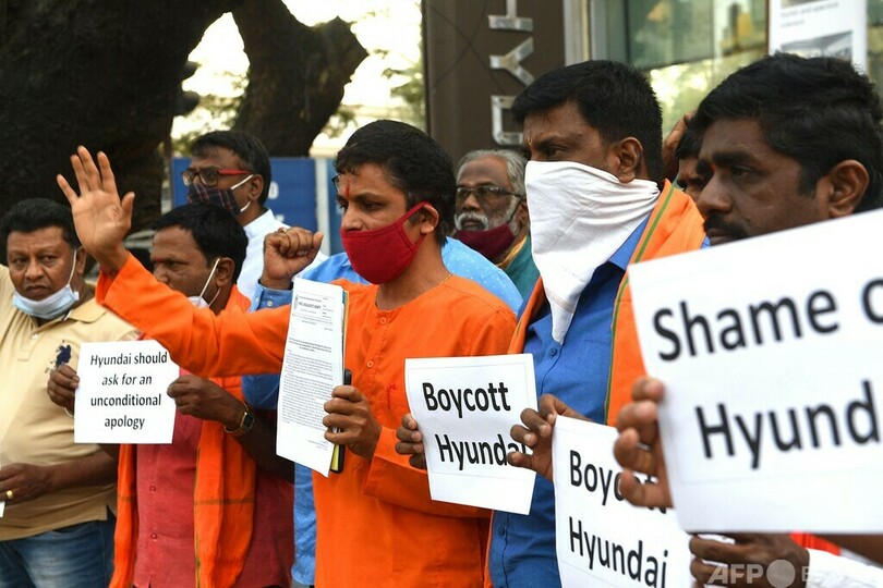 韓国・現代自にインド猛反発 ショールーム前で抗議デモ