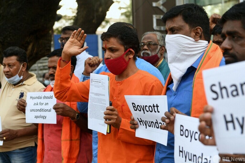 韓国・現代自にインド猛反発 ショールーム前で抗議デモ