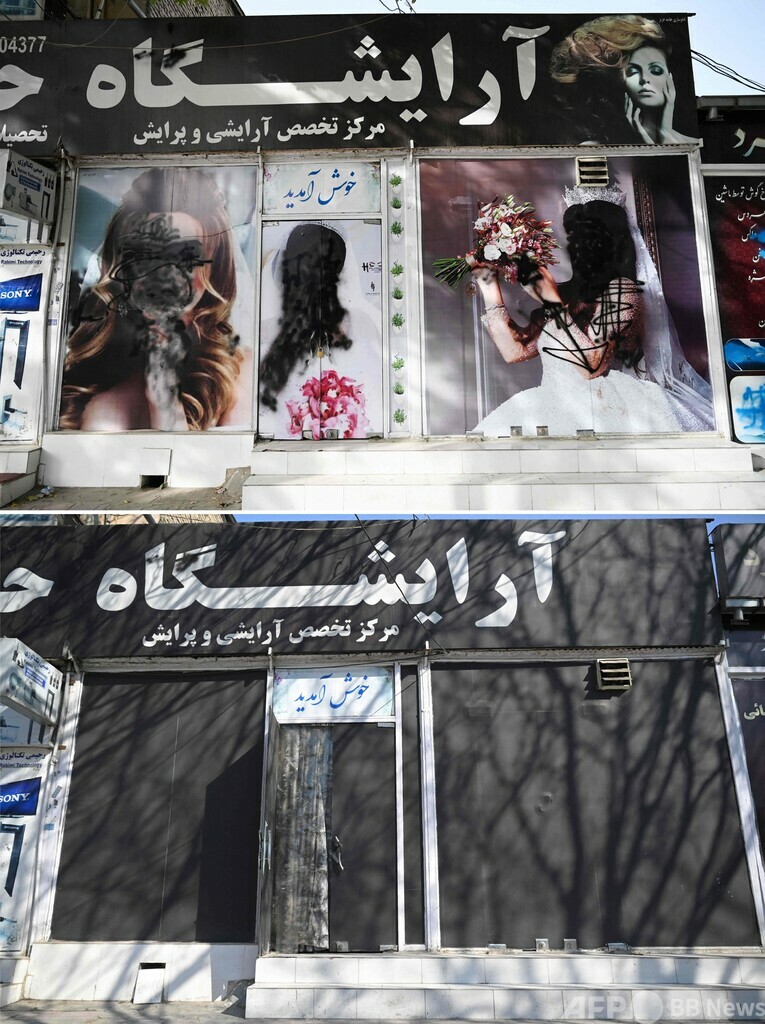 カブール中心部の美容院の多くが、店頭に掲示していた流行のヘアスタイル姿の女性のポスターを撤去した。