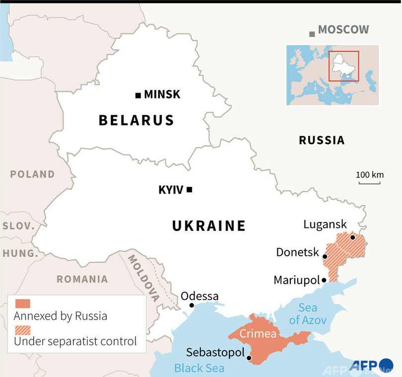 フランスのジャンイブ・ルドリアン(Jean-Yves Le Drian)外相は演習について、「非常に暴力的な意思表示だ」と批判。同日モスクワを訪問した英国のリズ・トラス(Liz Truss)外相は「(ロシアが)ウクライナの主権を脅かそうとしている」と非難した。NATOのイエンス・ストルテンベルグ(Jens Stoltenberg)事務総長も「(部隊の増強は)欧州の安全保障にとって危険な瞬間だ」と同調した。(c)AFP/Jonathan BROWN with Dmitry ZAKS in Kyiv