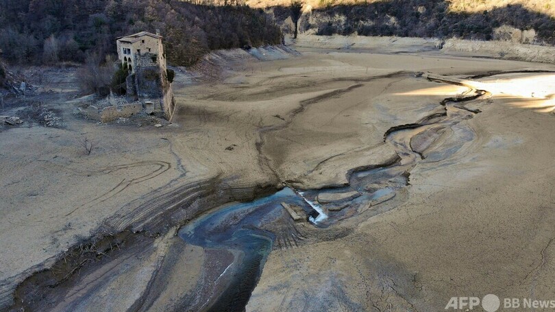 水位低下で姿を現した教会 スペイン・カタルーニャ