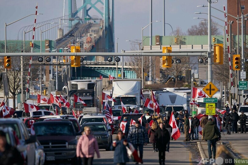 デモ隊は、オンタリオ州ウィンザー(Windsor)と米デトロイト(Detroit)を結ぶアンバサダー・ブリッジ(Ambassador Bridge)などを封鎖。この橋は毎日4万人以上の通勤者や観光客が往来し、両国間の貿易額全体の約4分の1に当たる1日平均3億2300万米ドル(約370億円)相当の商品の運送に使用されている。