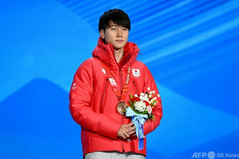 森重航に銅メダル授与 スピードスケート男子500m、北京冬季五輪