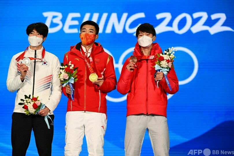 今種目では中国の高亭宇(Gao Tingyu)が金メダル、韓国の車ミン奎(Cha Min-kyu、チャ・ミンギュ)が銀メダルを獲得した。(c)AFP