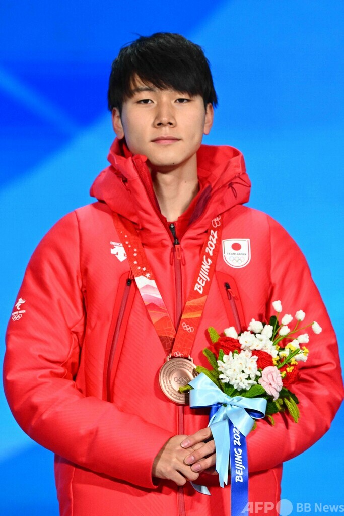 【2月12日 AFP】北京冬季五輪は12日、スピードスケート男子500メートルのメダル授与式が行われ、3位に入った森重航(Wataru Morishige)に銅メダルが授与された。