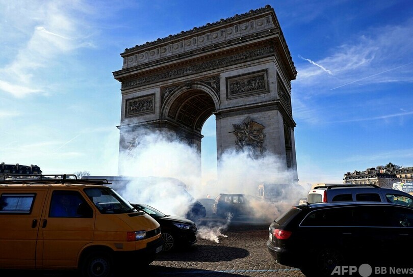 仏パリにワクチン抗議の車列 警察、催涙ガスで排除