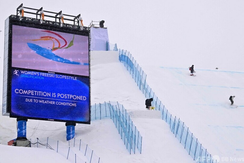 【2月13日 AFP】(更新)北京冬季五輪は13日、張家口(Zhangjiakou)の雲頂スノーパーク(Genting Snow Park)で予定されていたフリースタイルスキー女子スロープスタイル予選が大雪のため延期になった。
