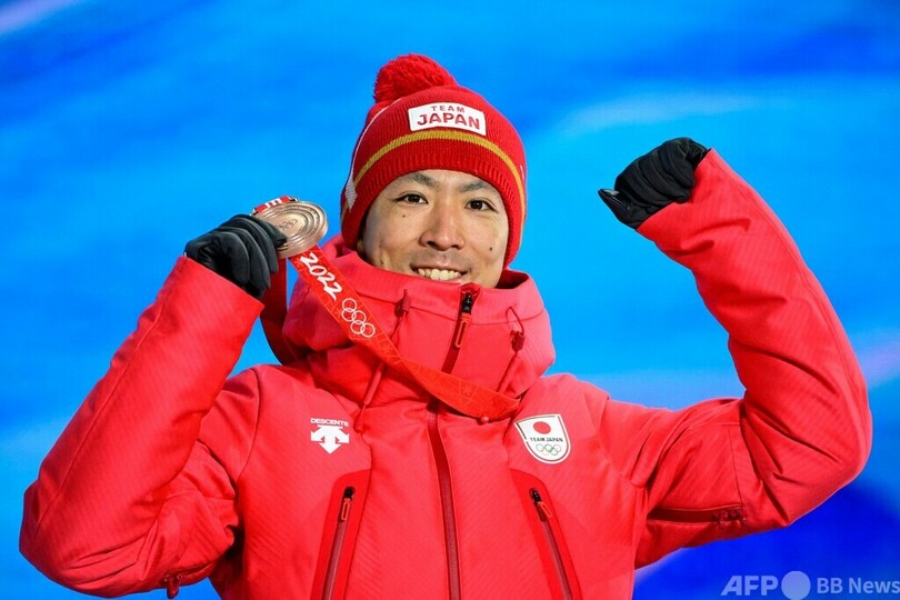 【2月16日 AFP】北京冬季五輪は16日、ノルディックスキー複合個人ラージヒルのメダル授与式が行われ、3位に入った渡部暁斗(Akito Watabe)に銅メダルが授与された。