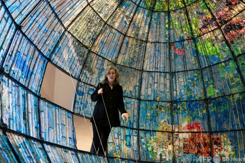 作品は、外から見るとまるで宝石をちりばめた地球のように見えるが、内側からはそれが海洋に漂うプラスチックごみであることが分かる。地球環境問題に対する関心を高めるのが狙いだ。