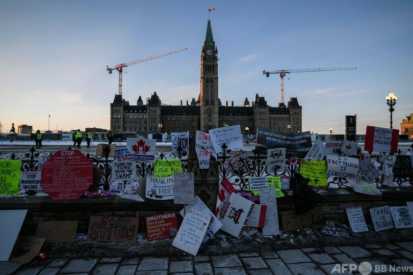 ワクチン義務化をめぐっては、抗議するトラック運転手らのデモが長期化。国境の橋がトラックの車列で一時封鎖されたほか、カナダの首都オタワでは3週間近くにわたり中心部の路上をデモ隊が占拠している。