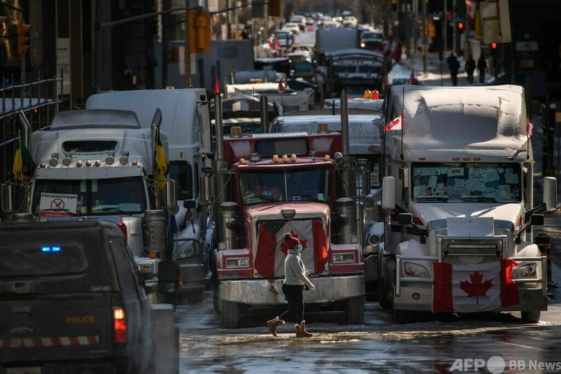 ワクチン義務化をめぐっては、抗議するトラック運転手らのデモが長期化。国境の橋がトラックの車列で一時封鎖されたほか、カナダの首都オタワでは3週間近くにわたり中心部の路上をデモ隊が占拠している。