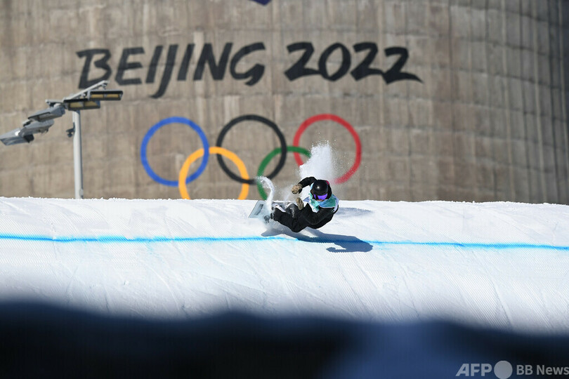 スノーボードとフリースタイルスキーが行われた北京市西部の首鋼スキージャンプ台(ビッグエア首鋼)。当初、ジャンプ台のすぐそばにある巨大な煙突状の建物がツイッター(Twitter)などで「原発みたい」と話題にもなった。