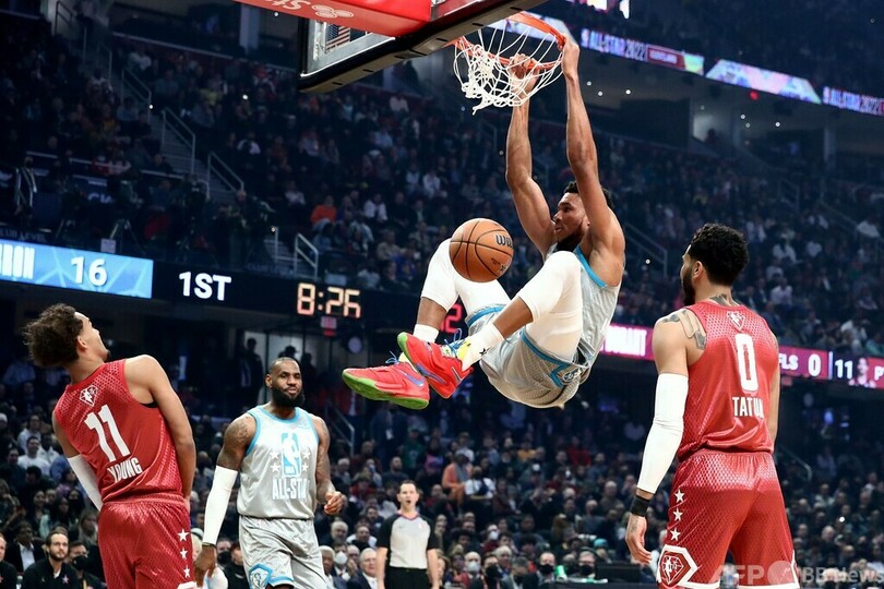 【2月21日 AFP】NBAオールスターゲーム(2022 NBA All-Star Game)が20日、米オハイオ州クリーブランド(Cleveland)のロケット・モーゲージ・フィールドハウス(Rocket Mortgage FieldHouse)で開催され、ステフェン・カリー(Stephen Curry)が活躍したレブロン・ジェームズ(LeBron James)率いるチームレブロンが163-160でケビン・デュラント(Kevin Durant)が主将のチームデュラントに勝利した。