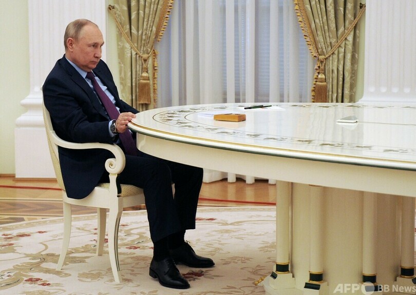 プーチン氏は前日、欧米諸国の反対を押し切り、ウクライナ東部の親ロシア派武装勢力が支配する2地域の独立を承認。1時間に及ぶ演説で、さまざまな歴史認識に言及しながら、ウクライナは「完全にロシアによってつくられた」と主張。ウクライナの存在自体について疑問を投げ掛けていた。