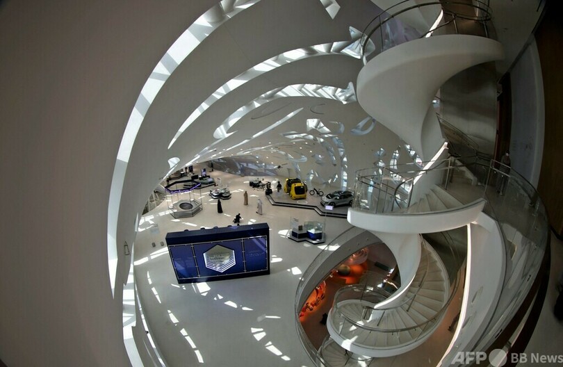 「世界で最も美しい建築物」をうたう同博物館は、世界一高い建築物「ブルジュ・ハリファ(Burj Khalifa)」のすぐ近くに建てられた。楕円(だえん)形をした銀色の7階建てで、内部は空洞になっている。