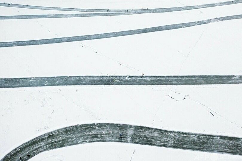 【今日の1枚】天然リンクで50キロの長距離スケート大会