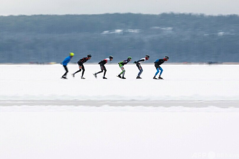 【今日の1枚】天然リンクで50キロの長距離スケート大会