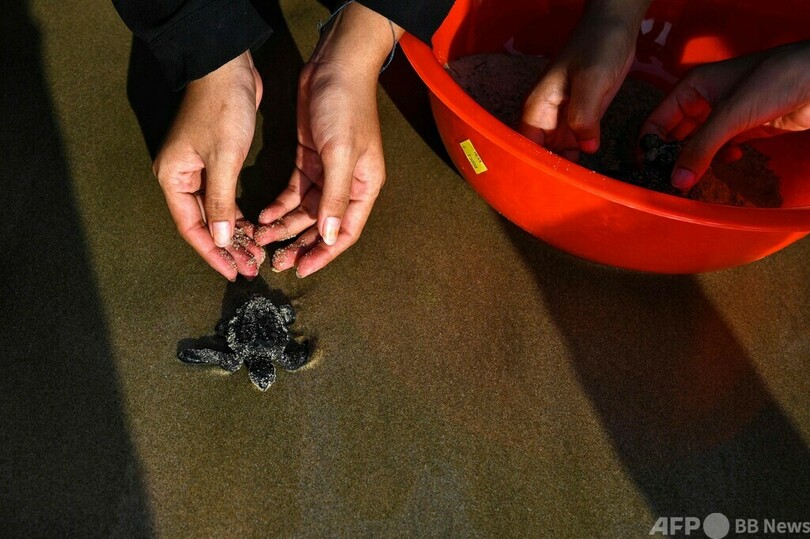 ニュース 環境・科学 SDGs 海の豊かさを守ろう ウミガメの赤ちゃんを放流 インドネシア 2022年2月28日 8:30 発信地:ロンガ海岸/インドネシア [ インドネシア アジア・オセアニア ] このニュースをシェア ‹ › ❮ 6/11 ❯ インドネシア・アチェ州のロンガ海岸で放されたウミガメの赤ちゃん(2022年2月21日撮影)。(c)CHAIDEER MAHYUDDIN / AFP 画像作成中 ! 【2月28日 AFP】インドネシア・アチェ(Aceh)州のロンガ(Lhoknga)海岸で、ウミガメの赤ちゃんが海に放された。容器の中で愛らしい姿を見せていた小さなウミガメたちは、夕暮れ時の砂浜に足跡を残して海に入っていった。(c)AFP 環境・科学 一覧へ> メディア・報道関係・法人の方向け 写真・動画 購入のお問合せ>