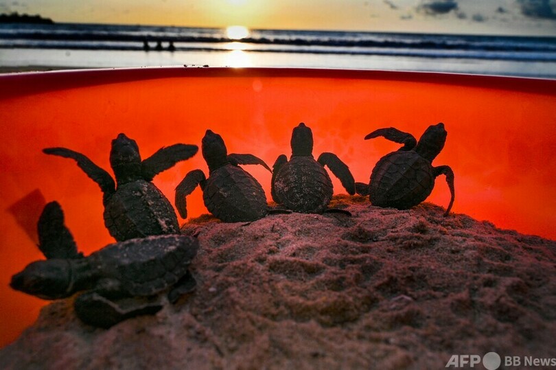 ニュース 環境・科学 SDGs 海の豊かさを守ろう ウミガメの赤ちゃんを放流 インドネシア 2022年2月28日 8:30 発信地:ロンガ海岸/インドネシア [ インドネシア アジア・オセアニア ] このニュースをシェア ‹ › ❮ 4/11 ❯ 容器に入れられたウミガメの赤ちゃん。この後、インドネシア・アチェ州のロンガ海岸から海に放された(2022年2月21日撮影)。(c)CHAIDEER MAHYUDDIN / AFP 画像作成中 ! 【2月28日 AFP】インドネシア・アチェ(Aceh)州のロンガ(Lhoknga)海岸で、ウミガメの赤ちゃんが海に放された。容器の中で愛らしい姿を見せていた小さなウミガメたちは、夕暮れ時の砂浜に足跡を残して海に入っていった。(c)AFP 環境・科学 一覧へ> メディア・報道関係・法人の方向け 写真・動画 購入のお問合せ>