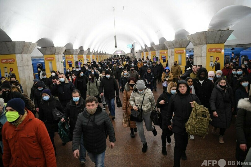 AFP特派員は、ウクライナ市民が地下鉄の駅に避難するのを確認した。(c)AFP