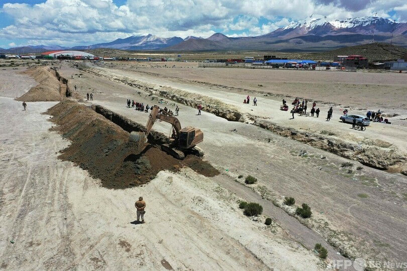 【2月28日 AFP】非正規移民の流入で政府が非常事態を宣言した南米のチリで、警察の取り締まりを支援するため、ボリビアやペルーと国境を接する北部4県に600人以上の兵士が動員された。ボリビアとの国境にあるチリ北部の村コルチャネ(Colchane)では、国境線に沿って重機で地面に大きな溝が掘られた。(c)AFP