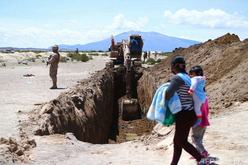 【2月28日 AFP】非正規移民の流入で政府が非常事態を宣言した南米のチリで、警察の取り締まりを支援するため、ボリビアやペルーと国境を接する北部4県に600人以上の兵士が動員された。ボリビアとの国境にあるチリ北部の村コルチャネ(Colchane)では、国境線に沿って重機で地面に大きな溝が掘られた。(c)AFP