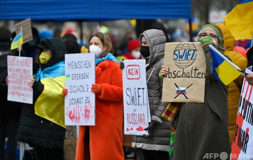 ウクライナは西側諸国に対し、世界の銀行が送金に使用しているスイフトからロシアの銀行を排除するよう強く訴えている。だがジョー・バイデン(Joe Biden)米大統領は今週、それを選択肢の一つとしつつも、「今のところ、欧州諸国の望む姿勢ではない」と説明した。