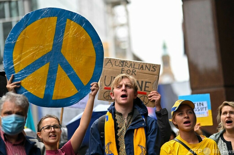 ニュース 戦争・紛争 豪でウクライナ侵攻抗議デモ 2022年2月26日 17:00 発信地:シドニー/オーストラリア [ オーストラリア アジア・オセアニア ウクライナ ロシア ロシア・CIS ] このニュースをシェア ‹ › ❮ 1/16 ❯ オーストラリア・シドニーで、ロシアのウクライナ侵攻に抗議する人々(2022年2月26日撮影)。(c)Steven SAPHORE / AFP 画像作成中 ! 【2月26日 AFP】オーストラリアのシドニーで26日、ロシアのウクライナ侵攻に抗議するデモが行われた。 首都キャンベラでもロシア大使館前に人々が集まり、抗議を示すプラカードを掲げるなどした。(c)AFP 戦争・紛争 一覧へ> メディア・報道関係・法人の方向け 写真・動画 購入のお問合せ>