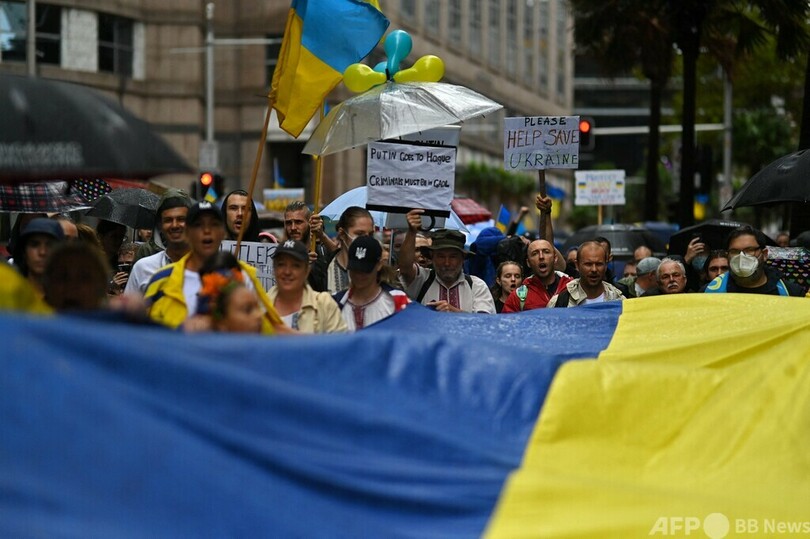 ニュース 戦争・紛争 豪でウクライナ侵攻抗議デモ 2022年2月26日 17:00 発信地:シドニー/オーストラリア [ オーストラリア アジア・オセアニア ウクライナ ロシア ロシア・CIS ] このニュースをシェア ‹ › ❮ 9/16 ❯ オーストラリア・シドニーで、ロシアのウクライナ侵攻に抗議する人々(2022年2月26日撮影)。(c)Steven SAPHORE / AFP 画像作成中 ! 【2月26日 AFP】オーストラリアのシドニーで26日、ロシアのウクライナ侵攻に抗議するデモが行われた。 首都キャンベラでもロシア大使館前に人々が集まり、抗議を示すプラカードを掲げるなどした。(c)AFP 戦争・紛争 一覧へ> メディア・報道関係・法人の方向け 写真・動画 購入のお問合せ>