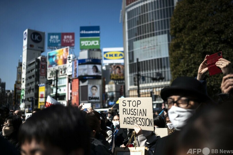 ニュース 社会 渋谷でデモ ロシアのウクライナ侵攻に抗議 2022年2月27日 12:06 発信地:東京/日本 [ 日本 アジア・オセアニア ウクライナ ロシア ロシア・CIS ] このニュースをシェア ‹ › ❮ 8/11 ❯ 渋谷で行われたロシアのウクライナ侵攻に抗議するデモ(2022年2月26日撮影)。(c)Charly TRIBALLEAU / AFP 画像作成中 ! 【2月27日 AFP】東京・渋谷で26日、ロシアのウクライナ侵攻に抗議するデモが行われ、大勢が集まった。(c)AFP 社会 一覧へ> メディア・報道関係・法人の方向け 写真・動画 購入のお問合せ>