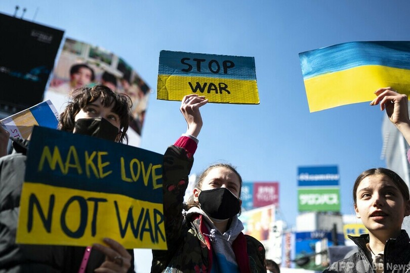 ニュース 社会 渋谷でデモ ロシアのウクライナ侵攻に抗議 2022年2月27日 12:06 発信地:東京/日本 [ 日本 アジア・オセアニア ウクライナ ロシア ロシア・CIS ] このニュースをシェア ‹ › ❮ 11/11 ❯ 渋谷で行われたロシアのウクライナ侵攻に抗議するデモ(2022年2月26日撮影)。(c)Charly TRIBALLEAU / AFP 画像作成中 ! 【2月27日 AFP】東京・渋谷で26日、ロシアのウクライナ侵攻に抗議するデモが行われ、大勢が集まった。(c)AFP 社会 一覧へ> メディア・報道関係・法人の方向け 写真・動画 購入のお問合せ>
