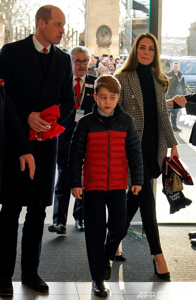 【2月27日 AFP】英国のウィリアム王子(Prince William)とキャサリン妃(Catherine, Duchess of Cambridge)、長男のジョージ王子(Prince George)が26日、ラグビーシックスネーションズ(Six Nations Rugby 2022)のイングランド対ウェールズ戦の観戦に、ロンドンのトゥイッケナム・スタジアム(Twickenham Stadium)を訪れた。(c)AFP