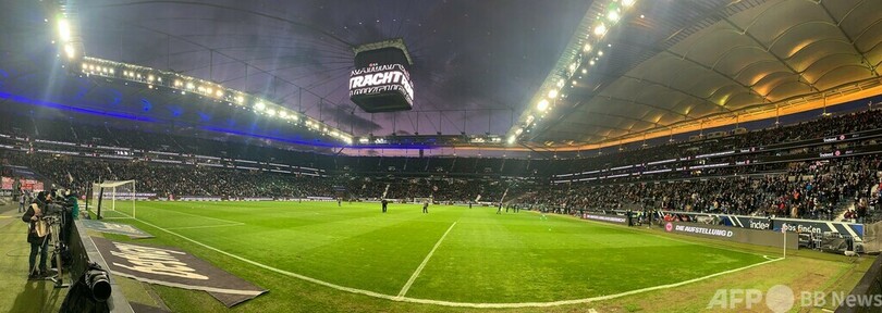 フランクフルトの本拠地はウクライナの国旗の色である青と黄色にライトアップされ、ピッチ脇の電光看板には「やめろ、プーチン」とロシアのウラジーミル・プーチン(Vladimir Putin)大統領へのメッセージが表示された。