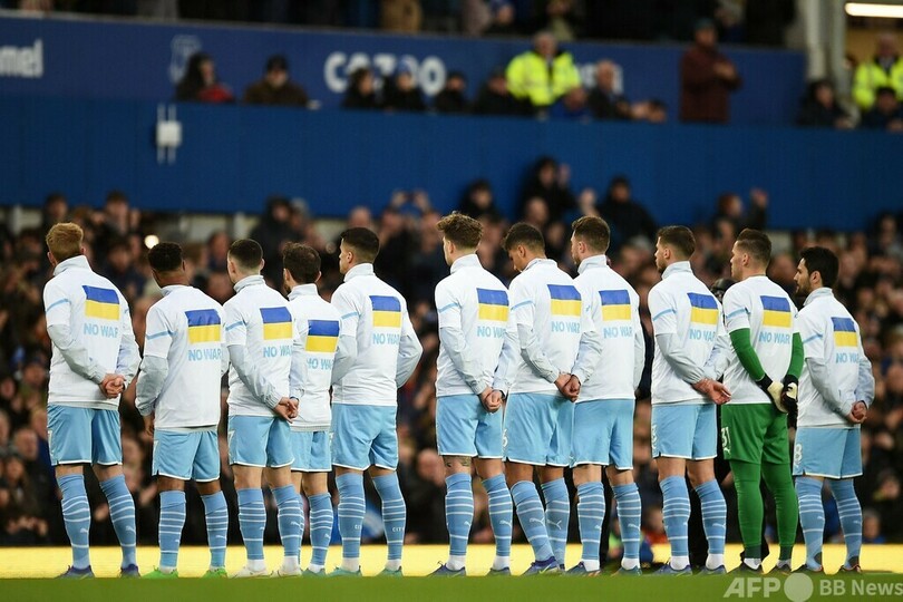 ロシアによる軍事侵攻を受けて、エバートンの選手はウクライナの国旗を手にし、シティの選手も同国の国旗があしらわれたTシャツを着用。スタンドでは「われわれはウクライナとともにある」と記されるなどした横断幕が広げられ、ジンチェンコは目に涙を浮かべた。