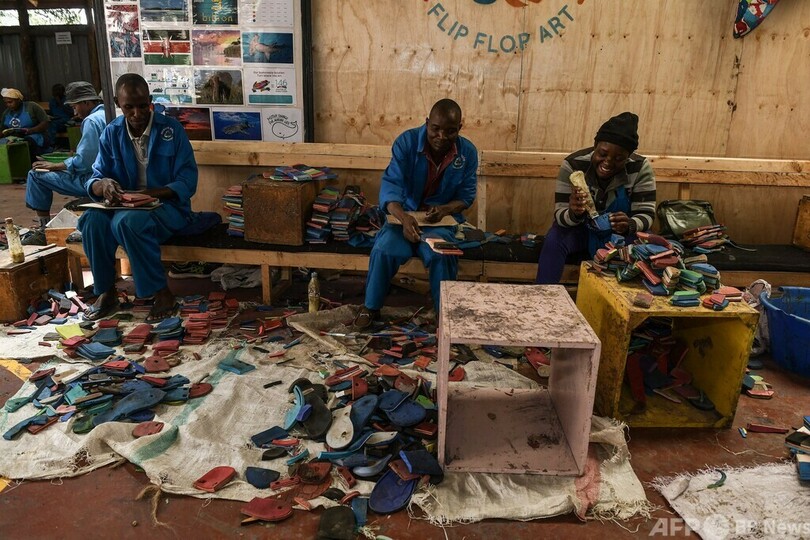 海を汚すビーチサンダル、おもちゃやアートに ケニア