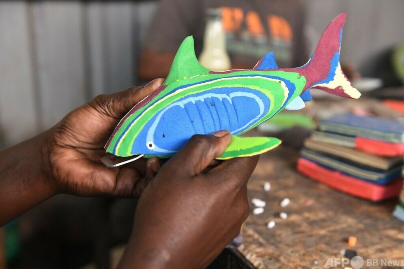 海を汚すビーチサンダル、おもちゃやアートに ケニア