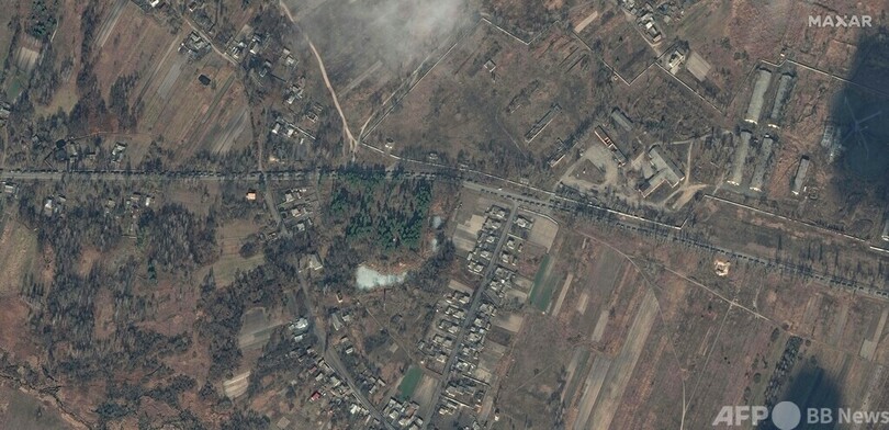 【2月28日 AFP】米宇宙技術会社マクサー・テクノロジーズ(Maxar Technologies)は27日、ロシア軍の車列がウクライナのイバンキフ(Ivankiv)を通過し、首都キエフへ向かう様子を撮影した衛星画像を公開した。(c)AFP
