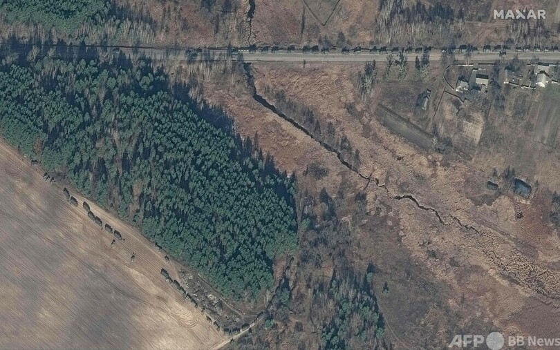 ウクライナ首都に向かうロシア軍部隊 衛星写真