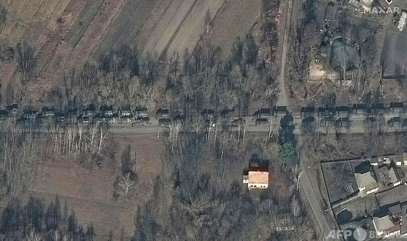【2月28日 AFP】米宇宙技術会社マクサー・テクノロジーズ(Maxar Technologies)は27日、ロシア軍の車列がウクライナのイバンキフ(Ivankiv)を通過し、首都キエフへ向かう様子を撮影した衛星画像を公開した。(c)AFP