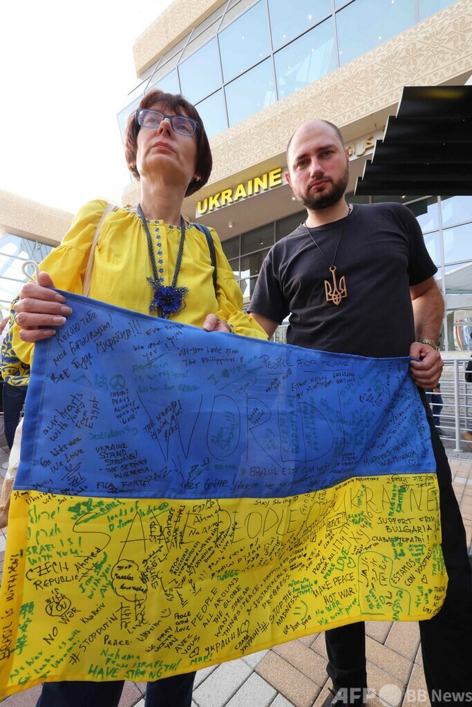 ニュース 戦争・紛争 ウクライナ危機 SDGs 平和と公正をすべての人に ドバイ万博ウクライナ館で連帯のメッセージ 2022年3月5日 8:00 発信地:ドバイ/アラブ首長国連邦 [ ウクライナ ロシア ロシア・CIS ] このニュースをシェア ‹ › ❮ 5/16 ❯ ドバイ万博のウクライナ館で、来場者がメッセージを書き込んだウクライナ国旗を持ち写真撮影に臨む人々。アラブ首長国連邦(UAE)ドバイで(2022年2月27日撮影)。(c)Giuseppe CACACE / AFP 画像作成中 ! 【3月5日 AFP】ドバイ万博のウクライナ館でこのほど、ロシアに侵攻されたウクライナへの連帯を示すため、来場者が国旗にメッセージを書き込んだ。(c)AFP 特集:ウクライナ危機 ロシアがウクライナに侵攻、世界は東西冷戦終結後最大の危機に直面している。 戦争・紛争 一覧へ> メディア・報道関係・法人の方向け 写真・動画 購入のお問合せ>