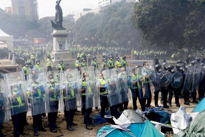 NZ、反コロナ規制の座り込み強制排除 テント燃やし抵抗