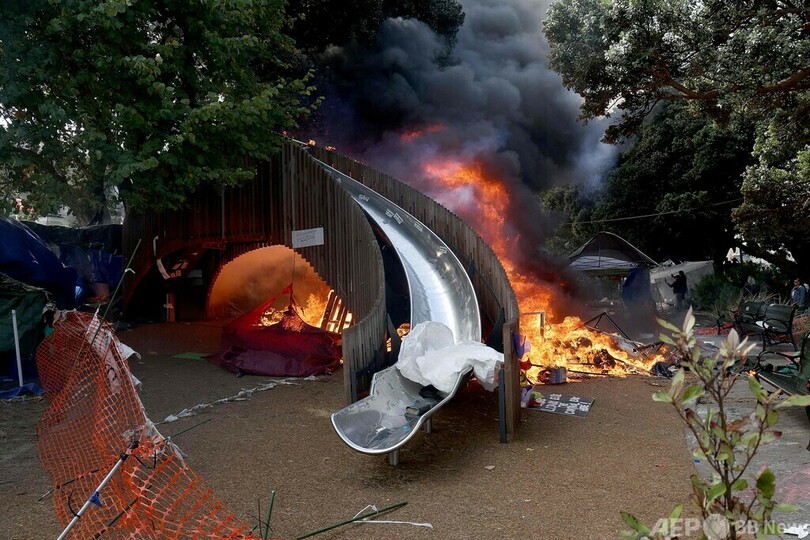 NZ、反コロナ規制の座り込み強制排除 テント燃やし抵抗