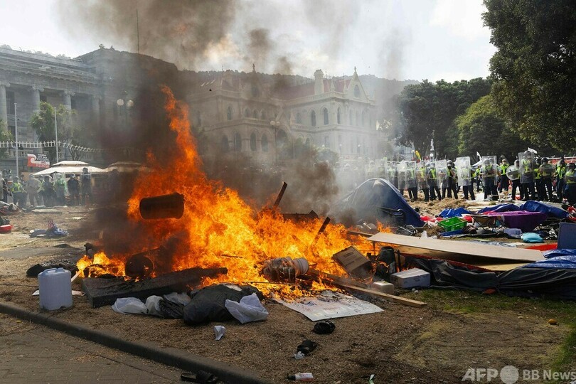 NZ、反コロナ規制の座り込み強制排除 テント燃やし抵抗