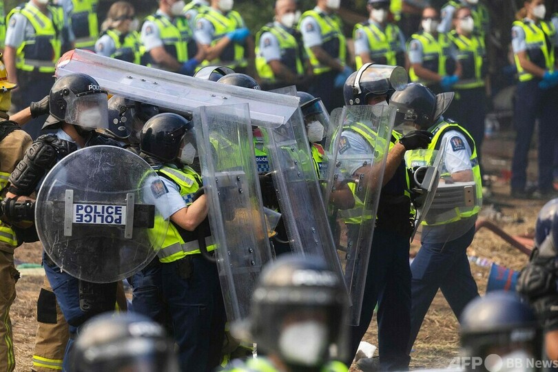 NZ、反コロナ規制の座り込み強制排除 テント燃やし抵抗